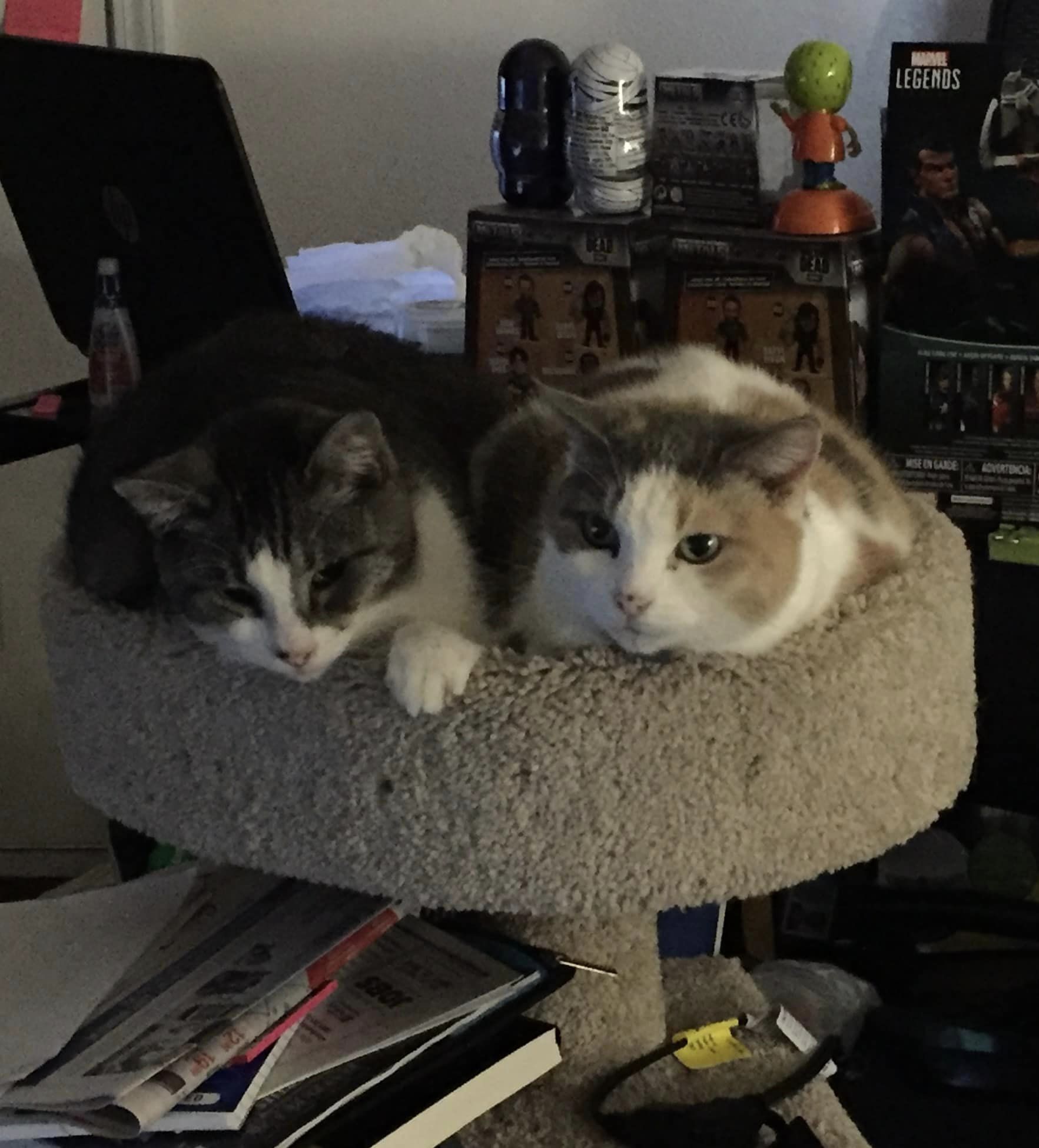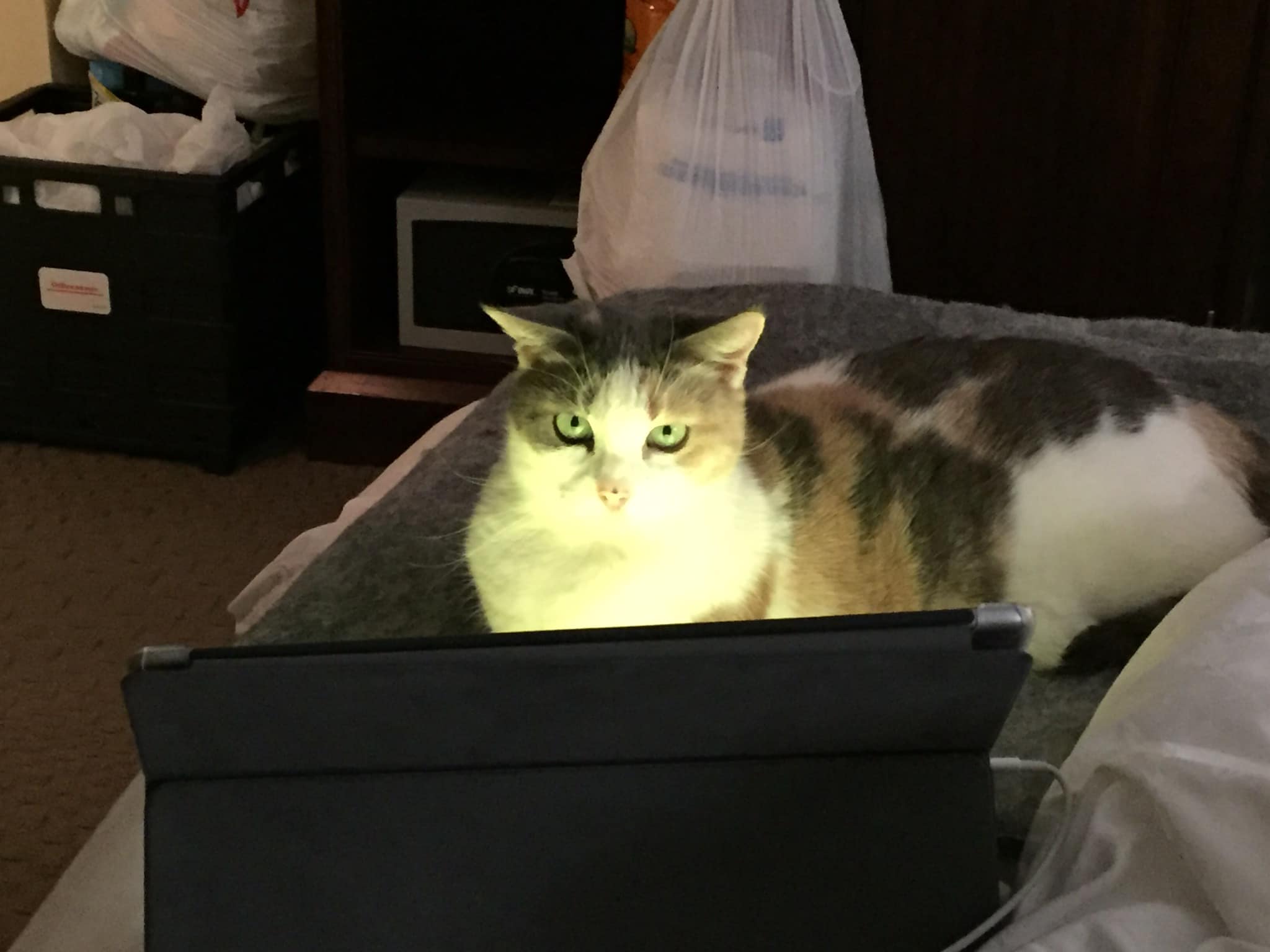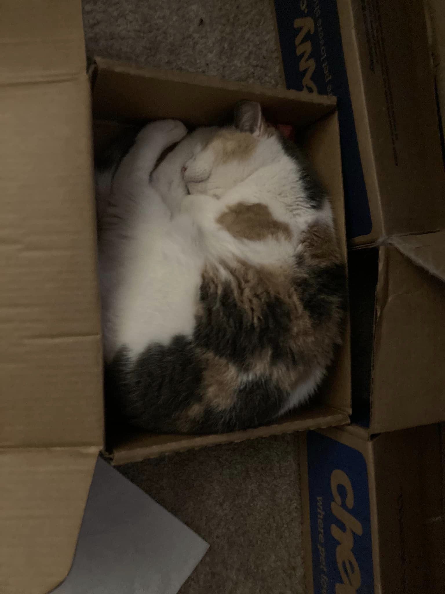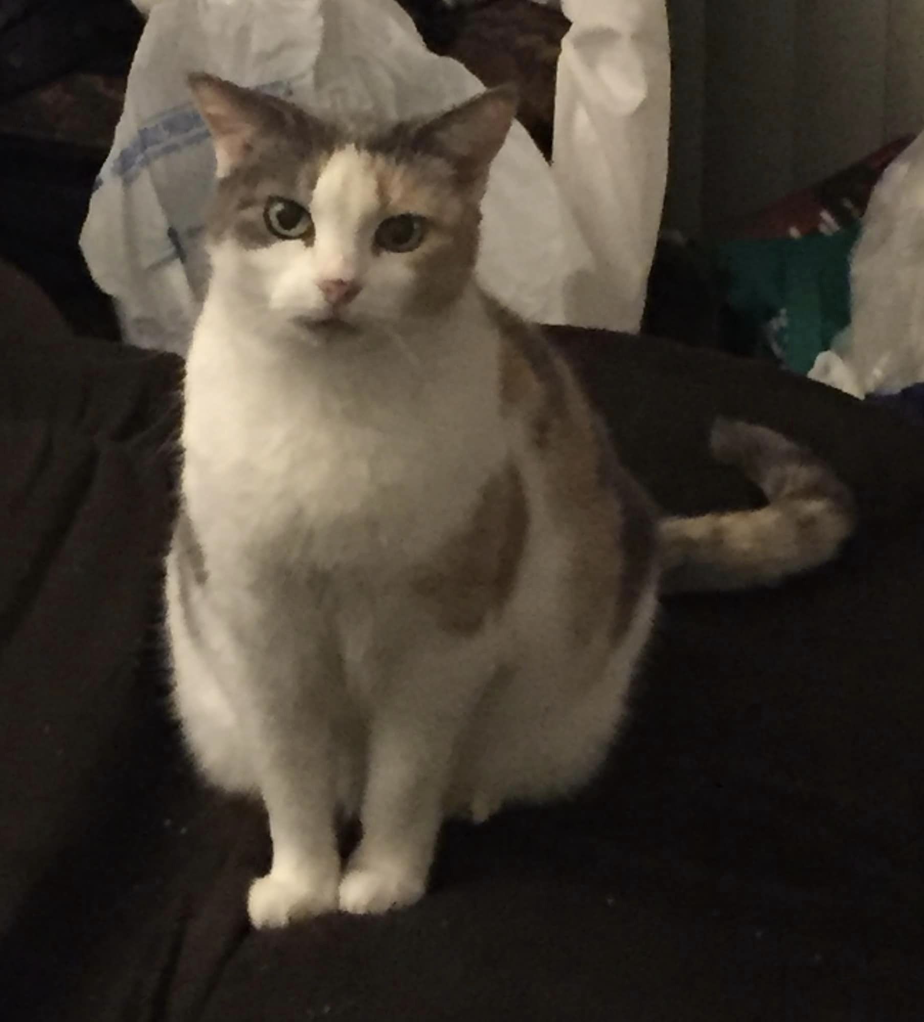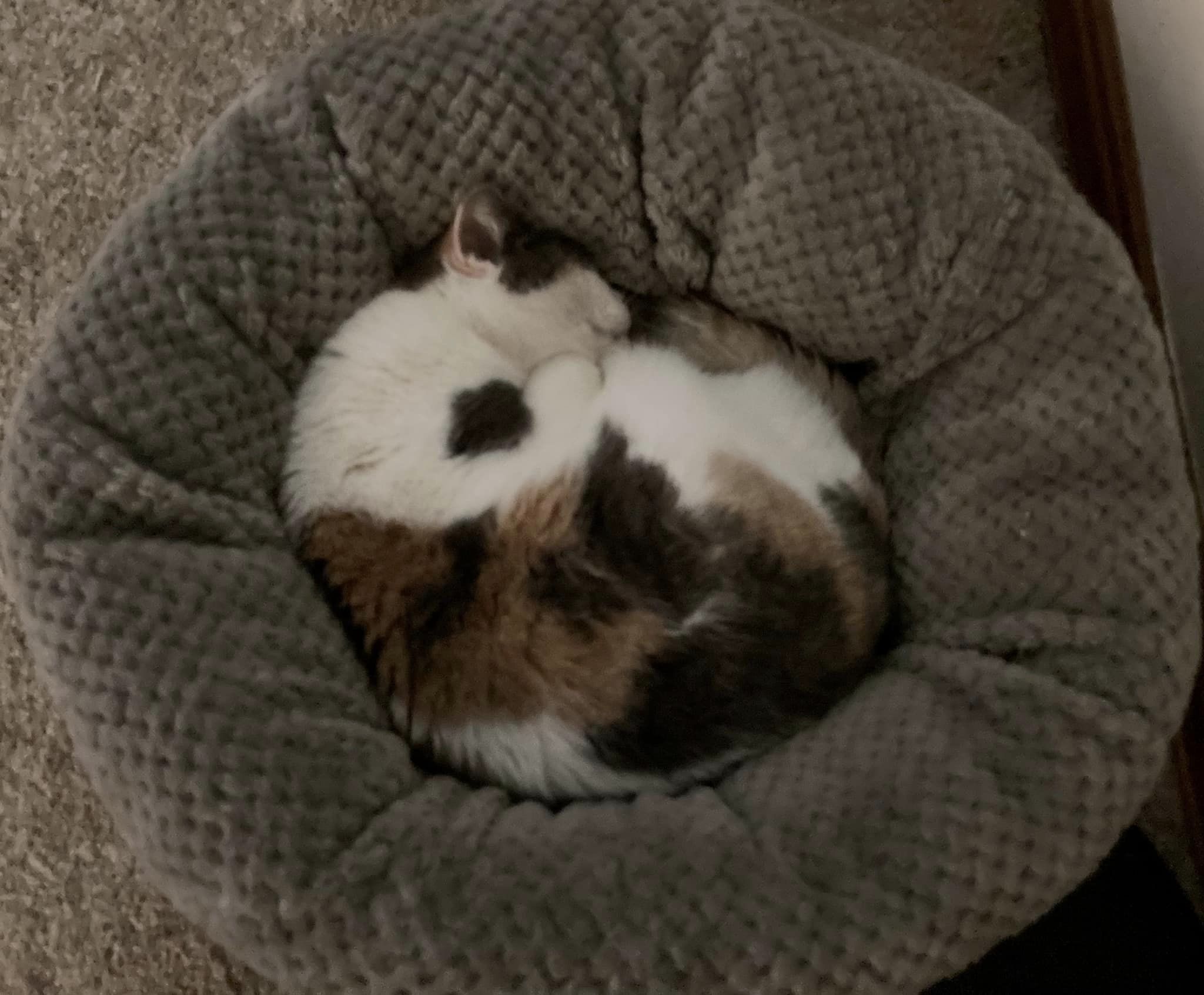 Ms. Katniss graced us with her presence for 20 years. She was a beautiful calico cat with a curiosity that could sometimes get her in trouble. She had a maternal instinct and ability to sense when we needed extra purr time to lift our spirits. She had a magical ability to disappear into any nook or cranny, sometimes for hours at a time- I believe she teleported to other dimensions on multiple occasions! She was a devoted mother to her son, Hugo, often grooming and cuddling him. I do love remembering the chariot races she would have with him when they were both in full zoomies mode. I also remember her being mesmerized by the spin cycle on our top load washing machine (with a clear lid) on more than one occasion She insisted on drinking from red solo cups for the longest timeeventually she got used to a water fountain I will miss her grooming my hand red raw on more than one occasion – im sure she thought I did a terrible job of grooming myself. She was sassy, intelligent and beautiful and we miss her dearly. We were fortunate to have had her with us for as long as we did. Rest In Peace Sweet Pea. We love you always Ms. Katniss.